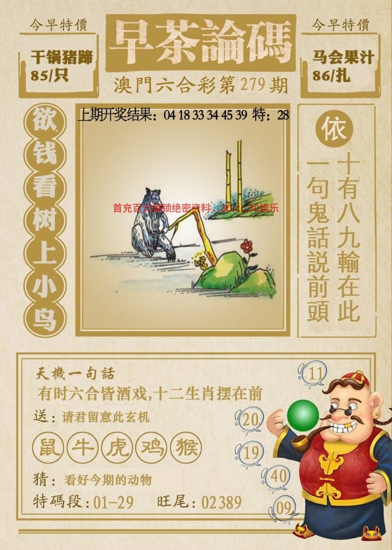 279期:家野两肖〖家禽+虎猴〗开:兔27错