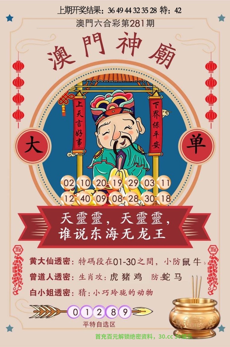 281期:七肖马猴龙鸡狗蛇开:羊47