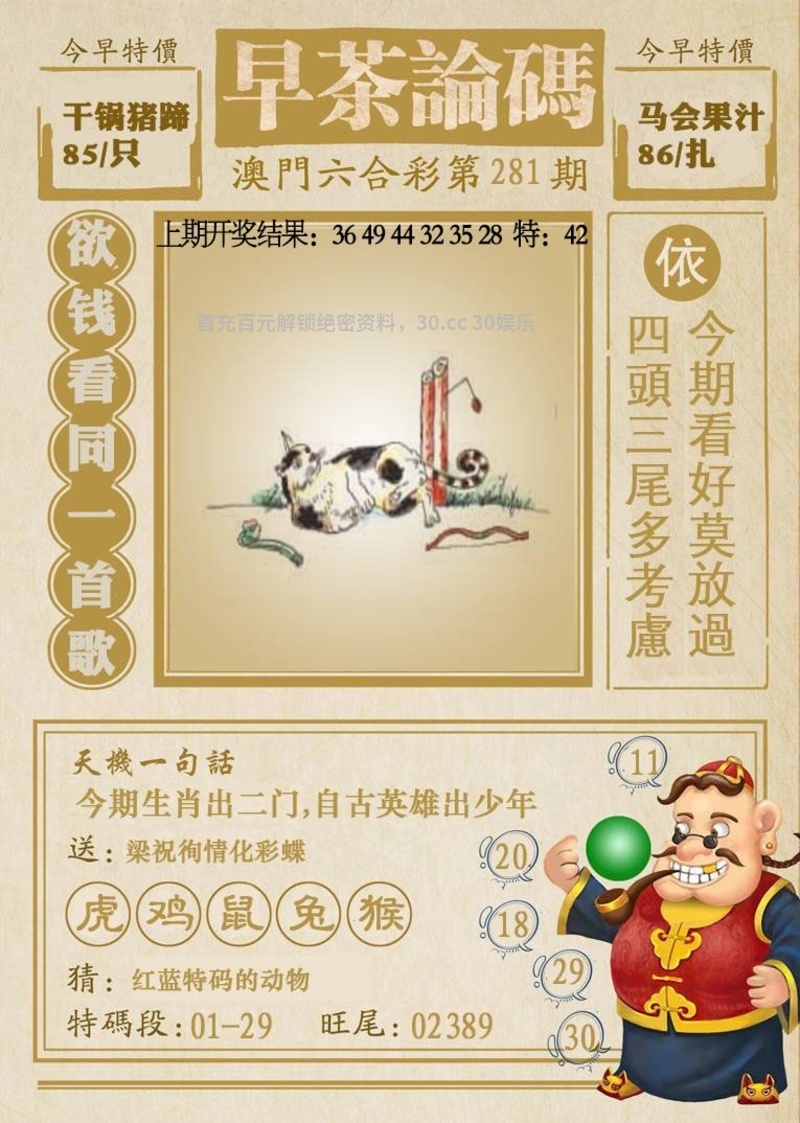281期:家野两肖〖家禽+猴鼠〗开:羊47准